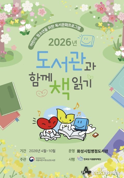 어웨이크뉴스 오경하 기자 | (재)화성시문화관광재단 병점도서관이 국립어린이청소년도서관이 주최하는 ‘2026년 도서관과 함께 책 읽기’ 공모사업 수행기관으로 선정되어 프로그램을 4월부터 10월까지 운영한다고 밝혔다.