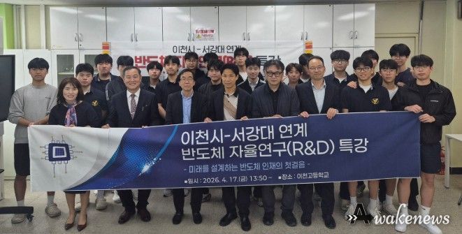 어웨이크뉴스 오경하 기자 | 경기도이천교육지원청은 2026년 '서강대학교 연계 반도체 프론티어 자율연구 프로그램'의 시작으로 4월 17일 이천고등학교 화학실에서 반도체 산업·기술·진로 특강을 운영했다.