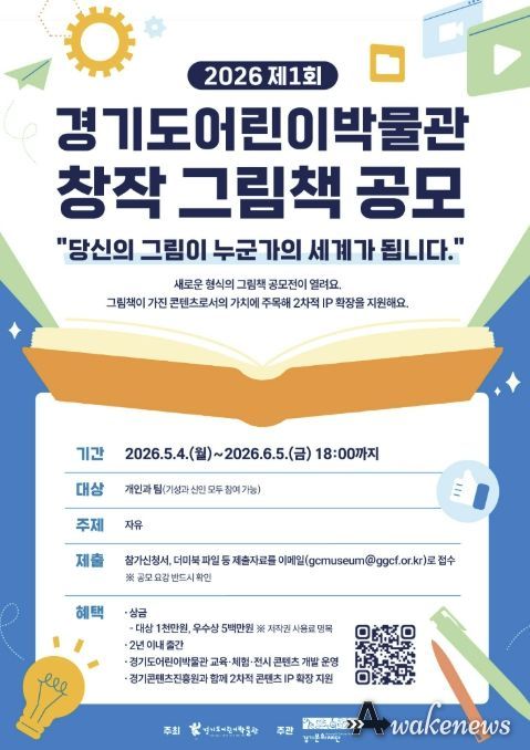 공모 접수는 오는 5월 4일부터 6월 5일까지 약 한 달간 진행되며, 자세한 공고 내용은 4월 20일부터 경기도어린이박물관 및 경기문화재단 누리집(홈페이지)을 통해 확인할 수 있다. 그림책 작가를 꿈꾸거나 새로운 도전을 원하는 창작자라면 누구나 참여할 수 있다.