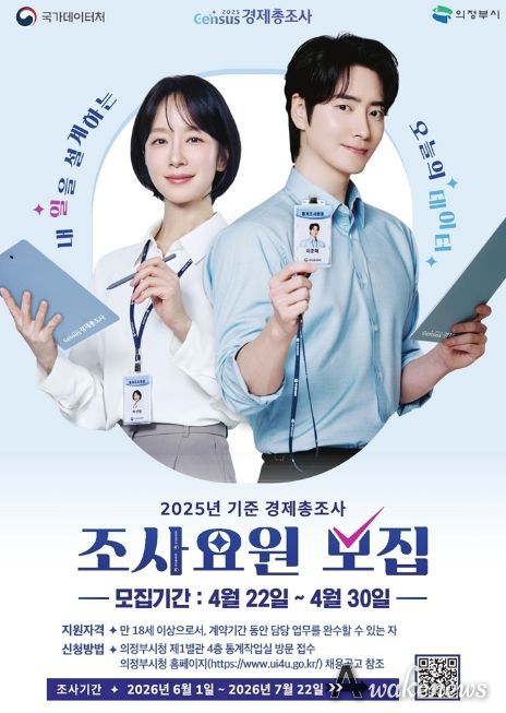 어웨이크뉴스 오경하 기자 | 의정부시는 6월 1일부터 실시되는 ‘2025년 기준 경제총조사’의 원활한 추진을 위해 조사요원 77명을 모집한다.