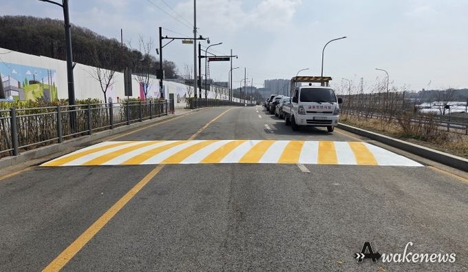어웨이크뉴스 오경하 기자 | 오산시는 가수초등학교 통학로 안전 확보를 위해 인근 우미린 레이크시티 아파트 공사장 진출입로 주변에 과속방지턱 4개소를 신설했다고 밝혔다.