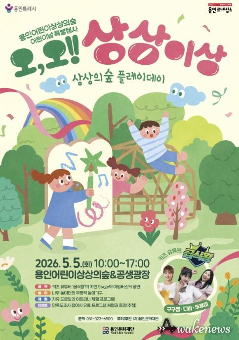 어웨이크뉴스 오경하 기자 | 용인문화재단은 오는 5월 5일 어린이날을 맞아 용인어린이상상의숲에서 2026년 어린이날 특별행사 ‘오, 오! 상상이상’을 개최한다고 밝혔다.