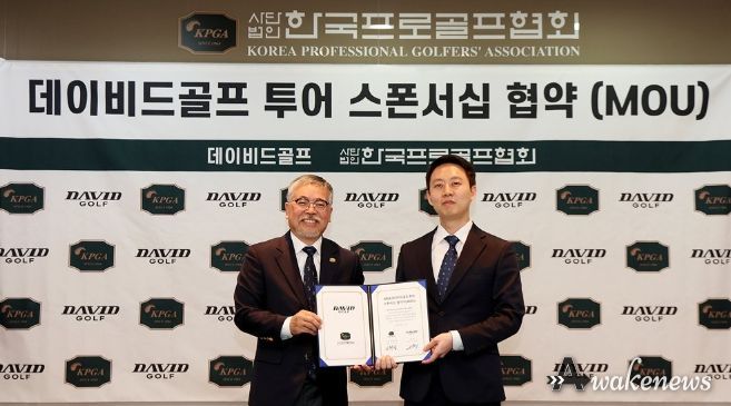 어웨이크뉴스 오경하 기자 | 4월 21일(화) 오전 11시, 경기도 성남시에 있는 KPGA 빌딩(10층)에서 KPGA 챌린지투어의 새로운 타이틀 스폰서 조인식이 열렸다. 이날 조인식에는 데이비드골프 구건우 대표와 ㈜한국프로골프투어(KPGT) 김원섭 대표이사가 참석했다.