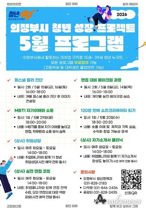 어웨이크뉴스 오경하 기자 | 의정부시는 미취업 청년의 취업 준비 역량 강화를 위해 ‘청년성장프로젝트’ 5월 프로그램을 운영한다.