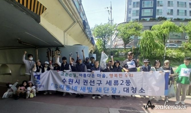 어웨이크뉴스 오경하 기자 | 수원시 권선구 세류2동은 지난 19일 이주민이 참여하는 깨끗한 세류2동을 만들기 위해 수원이주민센터와 함께하는 ‘우리 동네 새빛 새 단장’을 실시했다.