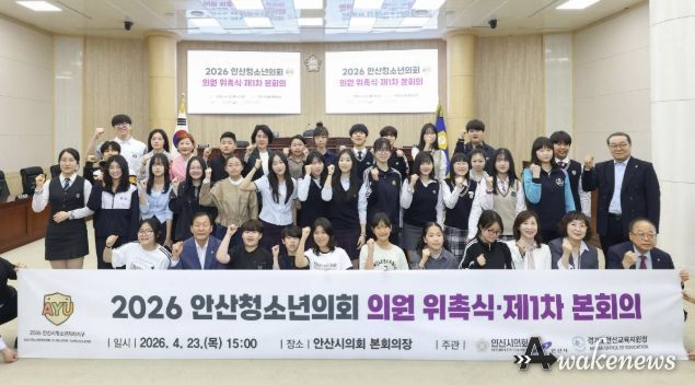 어웨이크뉴스 오경하 기자 | 안산청소년의회가 지난 23일 열린 ‘2026 안산청소년의회 의원 위촉식’과 ‘안산청소년의회 제1차 본회의’를 시작으로 본격적인 활동에 들어갔다.