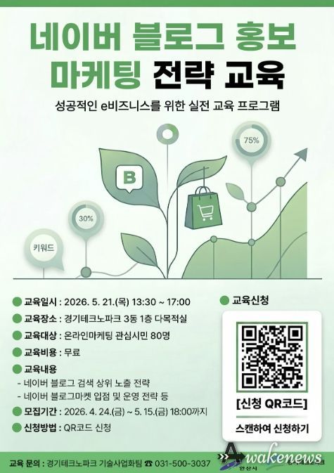 이번 교육은 5월 21일 오후 1시 30분부터 5시까지 경기테크노파크 3동 1층 다목적실(상록구 해안로 705)에서 진행된다.