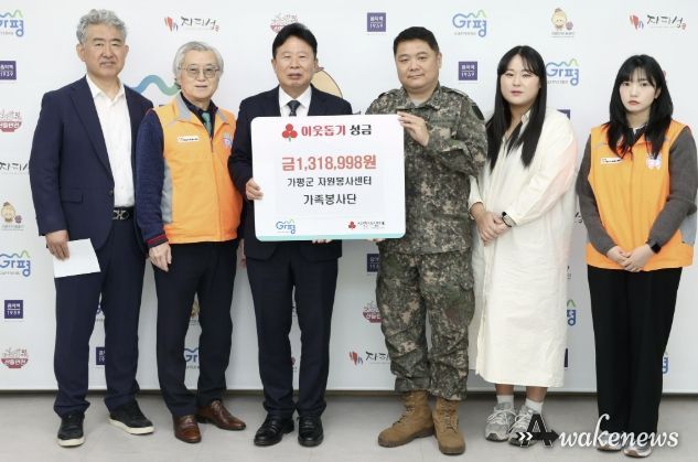 어웨이크뉴스 오경하 기자 | 가평군 자원봉사센터 가족봉사단은 23일 가평군청 군수실에서 이웃돕기 성금 기탁 전달식을 가졌다. 이날 행사에는 서태원 가평군수를 비롯해 연기복 가족봉사단 회장, 이명열 가평군 자원봉사센터장 등이 참석했다.