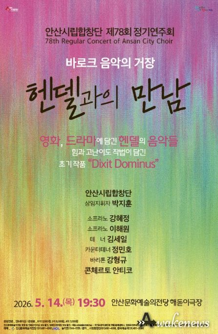 특히 공연의 하이라이트로는 헨델 초기 걸작인 ‘Dixit Dominus’가 무대에 오른다. 화려한 대위법과 빠른 전개, 장엄한 합창이 특징인 이 곡을 안산시립합창단의 탄탄한 앙상블로 만나볼 수 있을 것으로 기대된다.