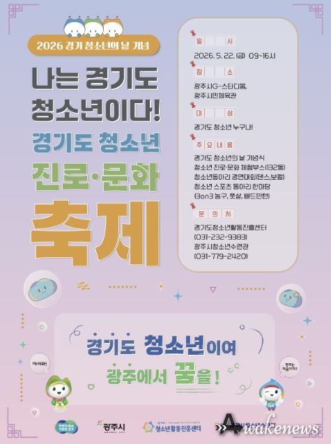 어웨이크뉴스 오경하 기자 | 광주시는 오는 5월 22일 광주시 G-스타디움 및 광주시민체육관 일원에서 ‘2026년 경기도 청소년 진로·문화 축제’를 개최한다고 29일 밝혔다.