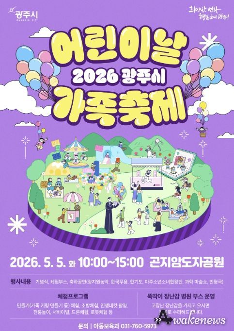 어웨이크뉴스 오경하 기자 | 광주시는 제104회 어린이날을 맞아 오는 5월 5일 오전 10시 곤지암도자공원에서 ‘어린이날 가족축제’를 개최한다.