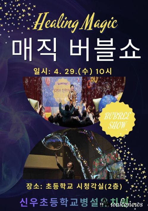 어웨이크뉴스 오경하 기자 | 신우초등학교병설유치원은 4월 29일 교내 시청각실에서 ‘힐링 매직버블쇼’ 공연을 개최했다고 밝혔다. 이번 공연은 유아들이 직접 참여하며 즐길 수 있는 체험형 프로그램으로 마련됐다.