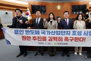 ▲용인특례시의 반도체산업 경쟁력강화위원회 어웨이크뉴스 오경하 기자 | 용인특례시(시장 이상일)의 반도체산업 경쟁력강화위원회(이하 경쟁력강화위원회)가 용인에 조성 중인 반도체 클러스터 국가산단을 정부가 계획대로 신속하게 추진할 것을 촉구하고 나섰다. 반도체 전문가들로 구성된 이 위원회는 26일 오후 시청 비전홀에서 열린 ‘2026년 제1회 반도체산업 경쟁력강화위원회’에서 대한민국 반도체산업 경쟁력을 키우려면 ‘속도’와 ‘정책의 신뢰성’이 뒷받침돼야 한다고 강조했다. 경쟁력강화위원회 측은 ‘용인 반도체 국가산단 지방 분산’ 논란에 대해 깊은 우려를 표하고, ‘AI초강대국 도약’이라는 정부의 국가적 비전에 맞춰 대한민국 반도체산업의 골든타임을 지켜내기 위해 성명을 발표했다고 설명했다. 경쟁력강화위원회는 성명서를 통해 연구개발과 생산현장의 물리적 거리는 반도체산업 경쟁력 저하로 이어질 것이라고 설명했다. 반도체 초미세 공정의 성공은 연구개발과 생산라인의 즉각적 대면 미팅을 통한 피드백에 달려 있고, 생산시설을 물리적으로 분리하면 기술 개발 속도 저하와 고객 대응 문제가 발생해 글로벌시장 선점 기회를 상실할 수 있다는 것이다. 또, 용인의 반도체 클러스터 구축은 전국