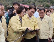 어웨이크뉴스 오경하 기자 | 김민석 국무총리는 10월 19일 오후, 올해 3월 21일에 발생한 대형산불에 이어 지난 7월 16일부터 나흘간 내린 집중호우로 큰 피해를 입은 경상남도 산청군을 방문했다. 현장에는 이승화 산청군 군수, 정영철 산청군 부군수, 박명균 경남도청 행정부지사, 천성봉 경남도청 도민안전본부장, 김광용 행정안전부 재난안전관리본부장, 이미라 산림청 차장 등이 동행했다. 김 총리는 먼저 시천면 상지마을을 방문하여 정영철 산청군 부군수로부터 산불 피해 및 복구 현황을 보고 받고 난 뒤, 현장 곳곳을 확인하며 복구계획을 점검했다. 산청군에서 건의한 산불 피해 청년농업인 대출, 재해보험 확대 등의 어려움에 대해서는 정부가 적극 검토해 지원 방안을 마련하겠다고 답했다. 김 총리는 검게 그을린 산자락만 보아도 마을주민들이 급박하게 대피하는 모습이 눈앞에 그려지는 것 같다고 안타까움을 전하고 다시는 우리 국민께서 삶의 터전을 두고 대피하시는 일이 없도록 정부와 지자체가 만반의 준비를 하겠다고 강조했다. 이어, 산사태 방지를 위한 사방댐의 역할에 대해 묻고, 산림청 차장에게 “향후