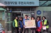 어웨이크뉴스 오경하 기자 | 의정부시 의정부2동주민센터는 12월 17일 의정부2동 지역사회보장협의체가 ‘100일간 사랑릴레이 배턴 잇기’에 동참해 취약계층을 위한 성금 20만 원을 전달했다고 밝혔다. 협의체는 올겨울에도 지역사회 돌봄을 강화하기 위한 의미 있는 걸음을 이어갔다. ‘겨울나기 지원’이 필요한 가구를 위해 온기 나눔 패딩을 전달하고 성금을 마련해 지원하는 등, 한 해의 마무리를 지역과의 상생으로 채웠다. 지명준 위원장은 “이번 성금이 어려움을 겪는 가정에 작은 보탬이 되길 바란다”며 “앞으로도 협의체가 지역사회와의 연결고리 역할을 충실히 수행하도록 최선을 다하겠다”고 전했다. 조미경 동장은 “연말을 맞아 ‘100일간 사랑릴레이 배턴 잇기’에 동참해주신 지역사회보장협의체에 감사드린다”며 “전달받은 성금은 지원이 필요한 분들을 위해 소중히 사용하겠다”고 말했다.